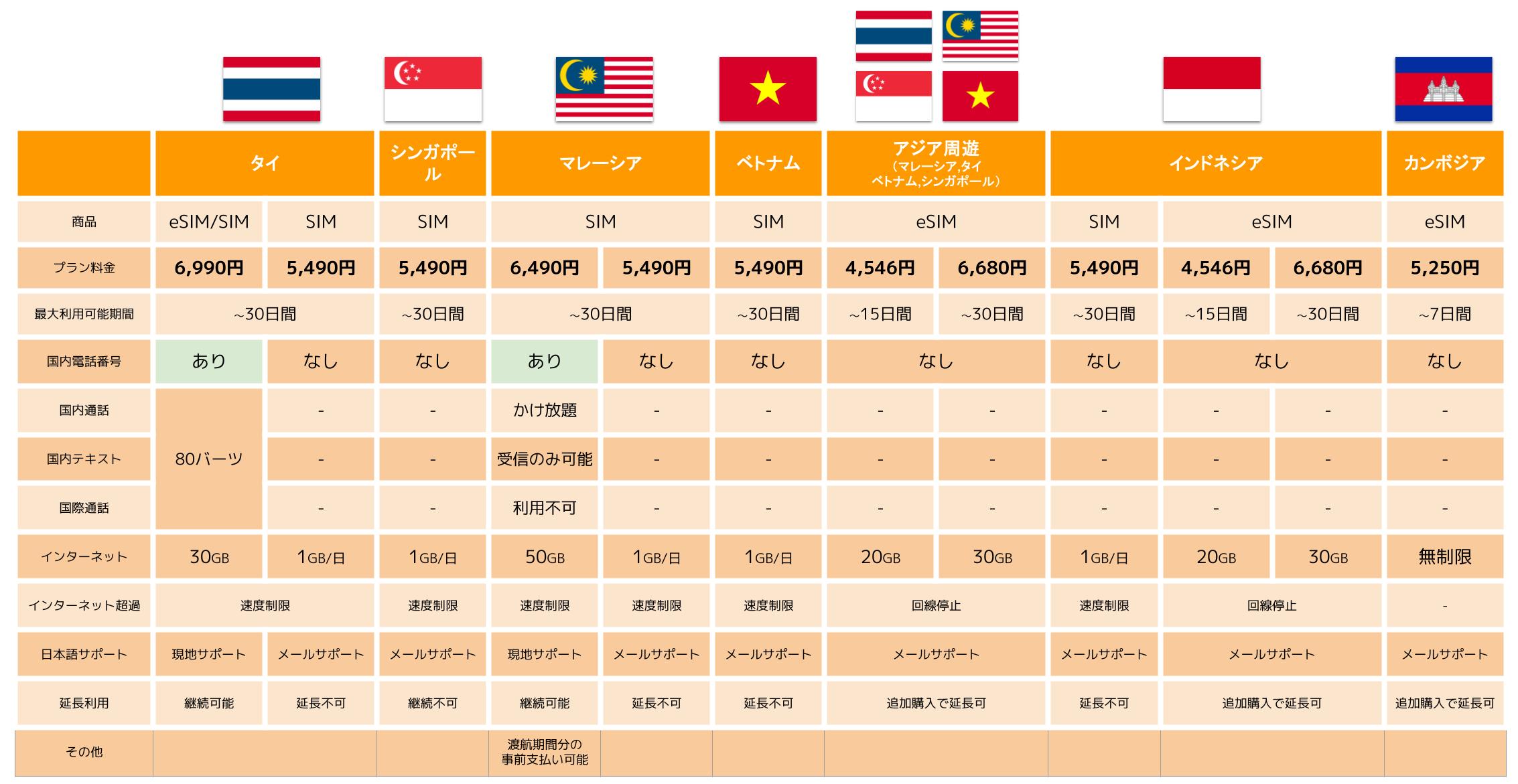 韓国(*電話番後付きSIMカード現在販売一時停止、データeSIM(電話番号なし)は販売中)