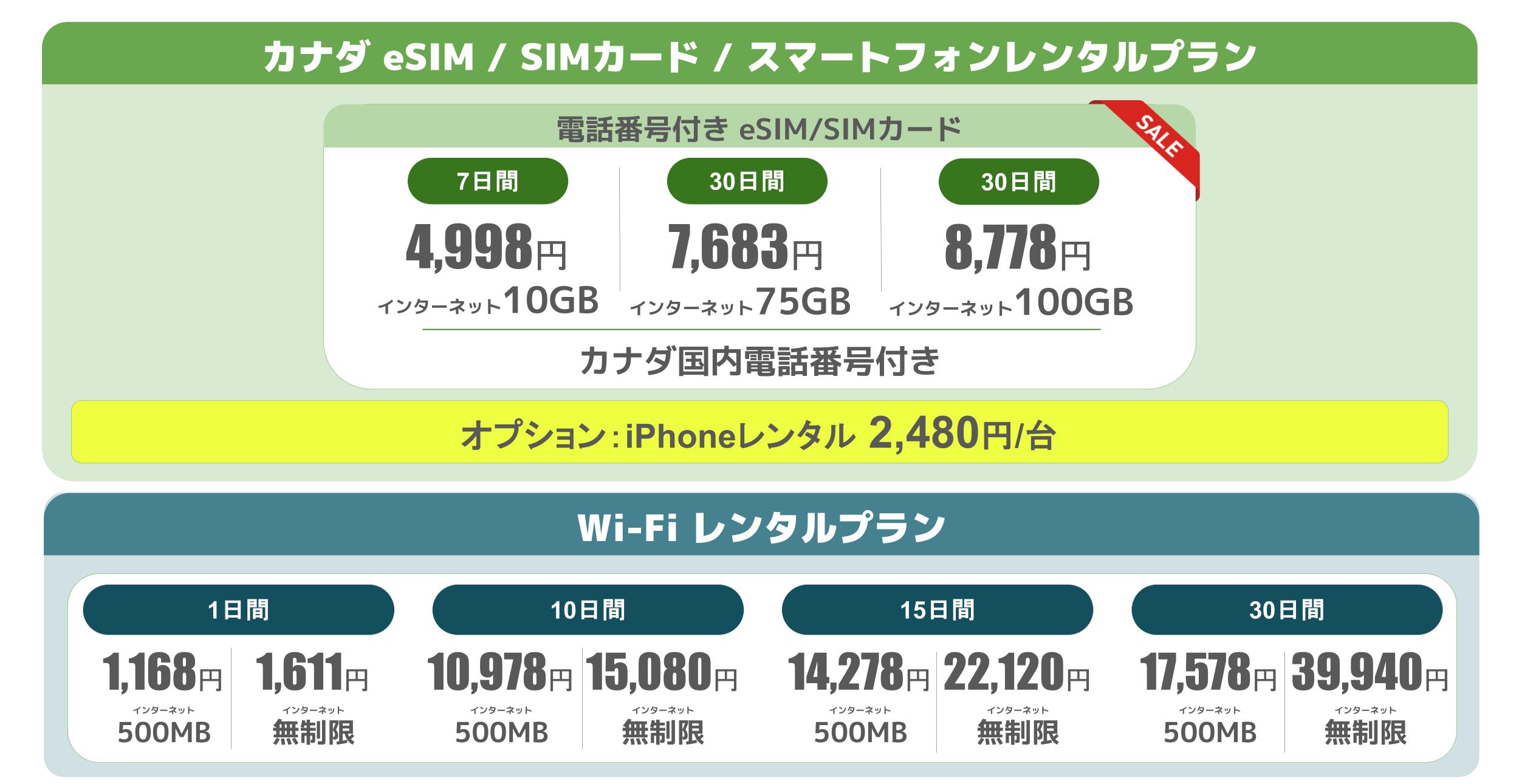 プラン内容:カナダ国内かけ放題+カナダ国内テキストメール無制限+日本宛て国際通話 1,000分+インターネット付き