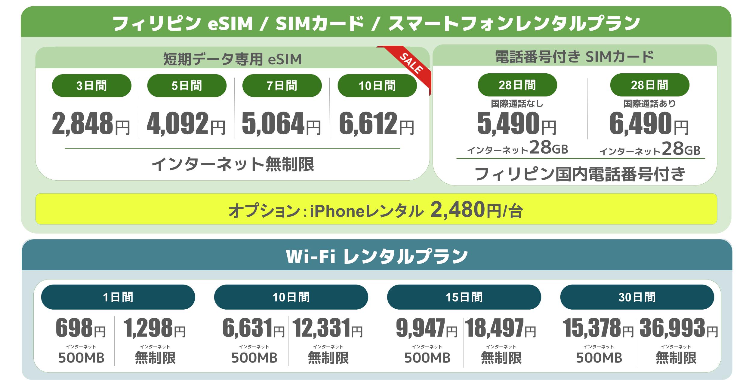 プラン内容;フィリピン国内通話+フィリピン国内テキストメールご利用分として100ペソ付き+インターネット24GB