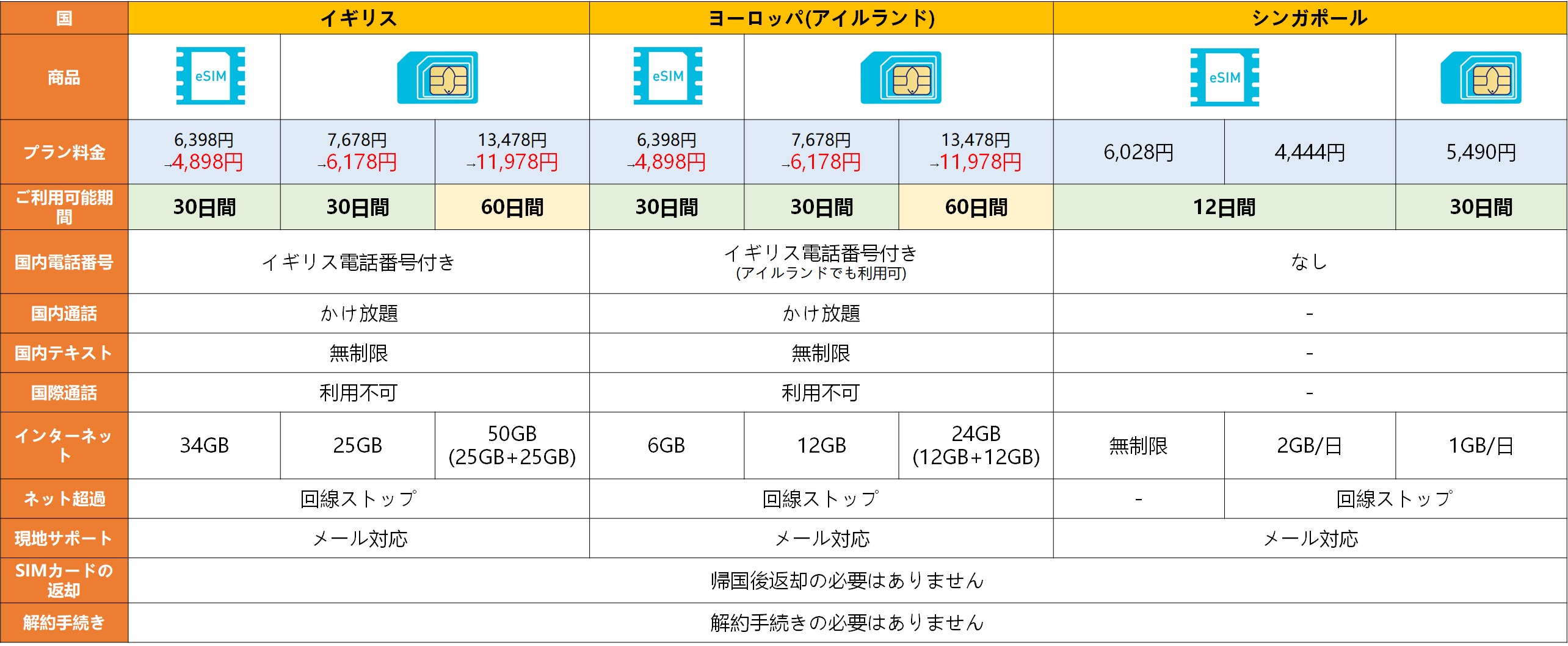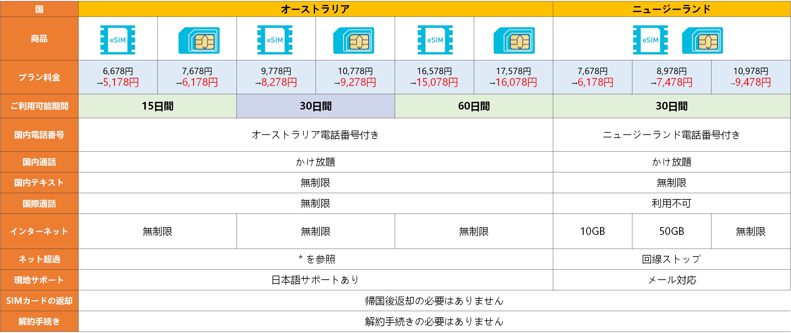 *ニュージーランド・ヨーロッパサービスでは国際通話が付いておりませんので、日本へ電話をされる際はLINEなどは活用ください。